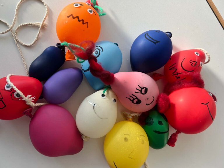 Die, die keinen Bewegungsdrang mehr hatten, sind mit Ida zurück zu unserem Raum und haben angefangen super coole Anti Stress Bälle selbst zu machen. Dafür hat Maren Ballons, Augen, Band und noch andere verschiedene Sachen mitgebracht, um die Stressbälle zu verzieren.